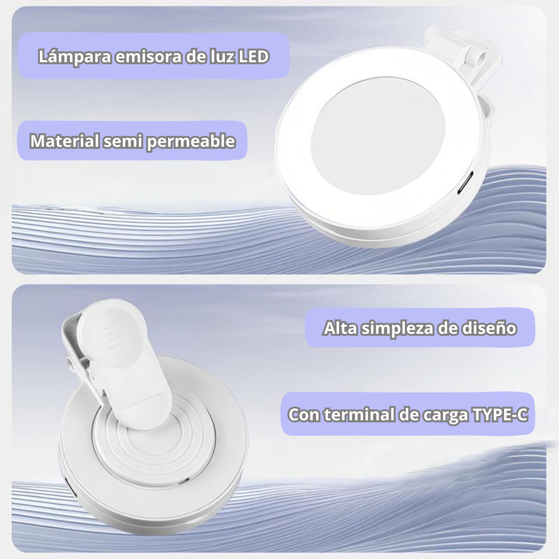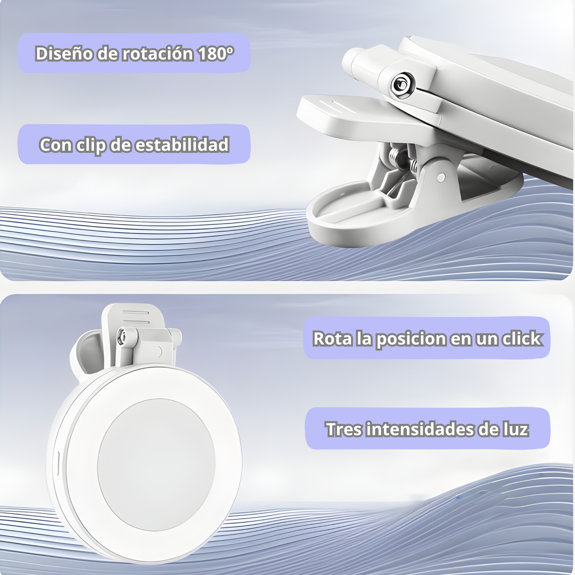Soporte ajustable para móvil: Se adapta a múltiples escenarios como maquillaje, live streaming, o videollamadas.